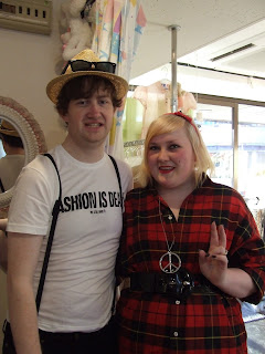 It was a costume party, so me and Henry dressed up as the Olsen Twins! I bought this giant flanelette shirt to wear as a dress and a peace necklace (grunge is back) and Henry wore his new $200 April 77 very skinny jeans with a red check shirt and braces. Very cool. We started the night at a BBQ at Gallermics new appartment (he is no longer homeless after being kicked out of my place) which was really cool and fun. Mai and Ole were there, so was Kim from Osaka. OH Gallermic and Ole are in TUNE magazine this month, Mai is in Fruits, and so is Yulia (who is djing at our wedding) and a whole bunch of other people. I love these people! I never want to leave Tokyo, but at the same time I cant wait to go back home and open a shop with Henry. Its a strange place to be mentally...I know I have to leave in September, but it is too soon, but not soon enough...Ah.. I think I need to visit Tokyo every year for the rest of my life...and if we have a shop we will be able to do that very easily ala spank.